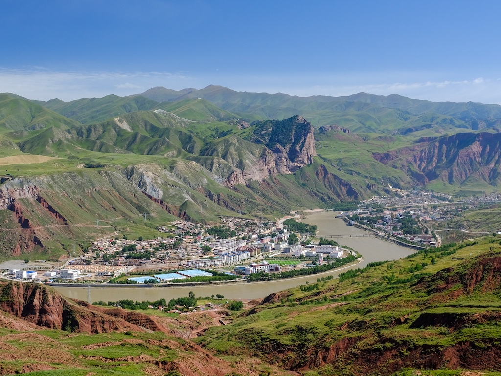 The Yellow River, also known as the Machu River in Tibetan, actually has multiple colors in northeastern Tibet, like an artist’s palette. It combines terracotta and beige tributaries. Sediment settles at the bottom of lakes and during overflows, the river flows clear again. It shows all kinds of shades—green, aquamarine, blue, gray-blue—the colors of the Tibetan sky, fresh and dry grass.