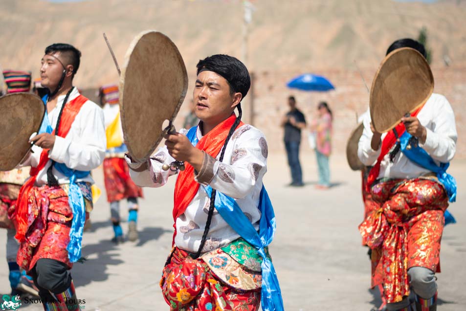 Today you will be visiting the Shaman festival in Rebkong. Shaman festival also called Lurol in Tibetan which is a celebration or ceremony honors to the local mountain gods and requests they bestow good health on villagers and a successful harvest on the community. The festivals is celebrating each villages with a slightly different activities, but most of them are same. Men beat drums, women dance, boys perform dramas and girls wear their traditional clothes and wear best jewleries. The festival is lively and colorful, the mountains god is invited to the ceremony whereas the Shaman serves as his medium and dancing in the crow. Stay overnight in Rebkong.